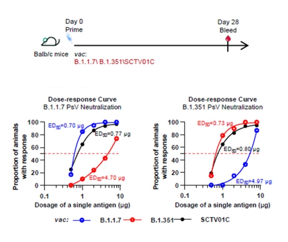 二价新冠疫苗SCTV01C对比单价疫苗的小鼠免疫原性优势